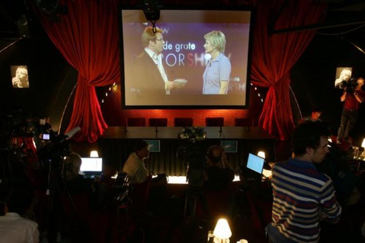 VRIJDAG - Een beeld van de opname van het programma De Grote Donorshow in de studio in Aalsmeer. BNN zond het veelbesproken programma uit. Het bleek allemaal nep te zijn.
