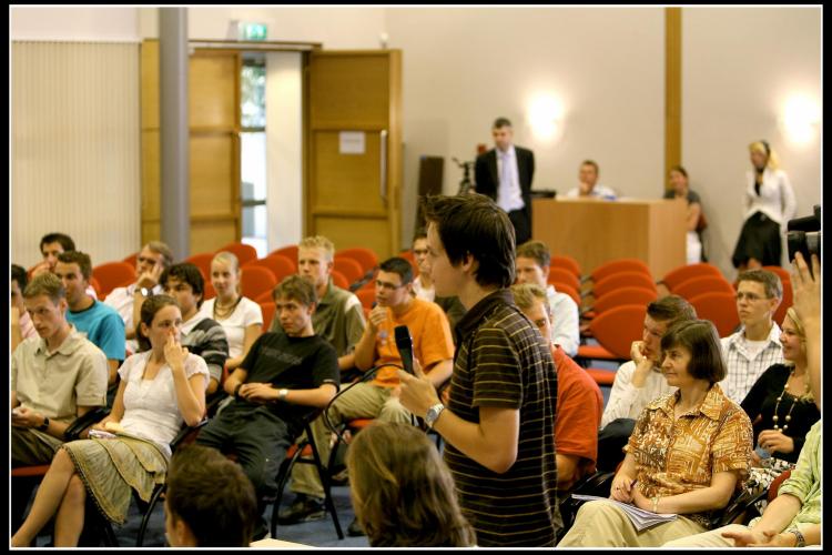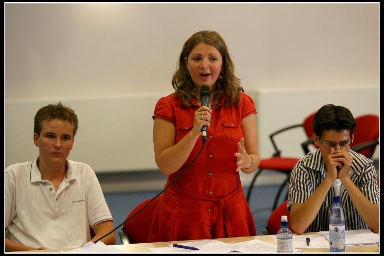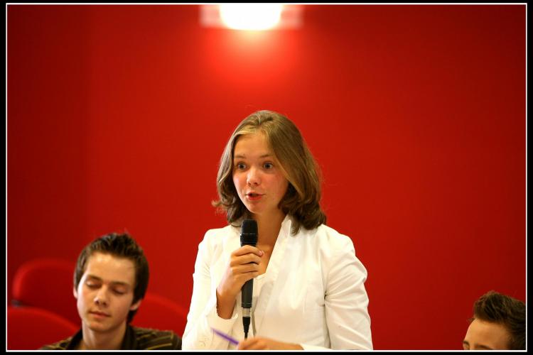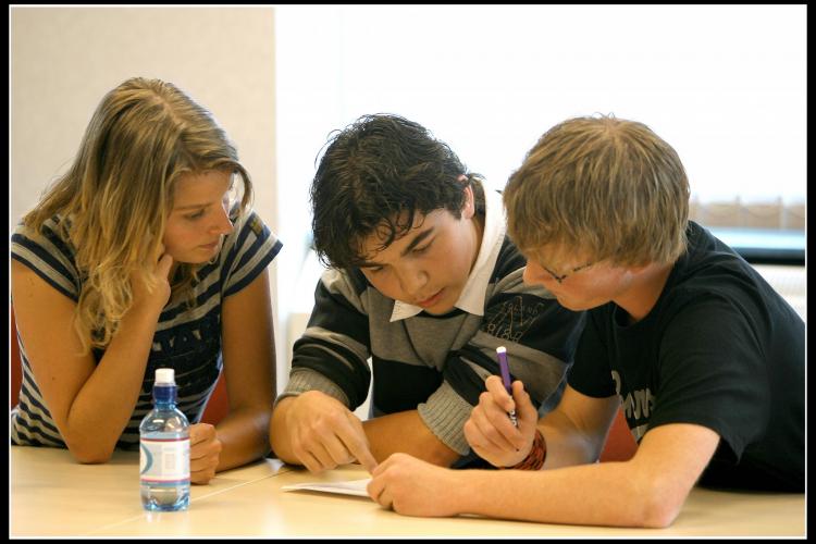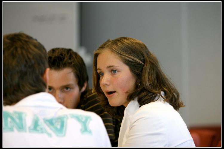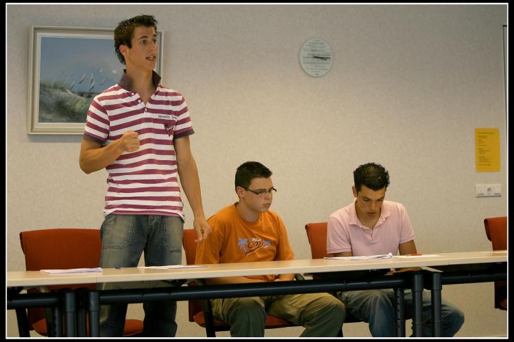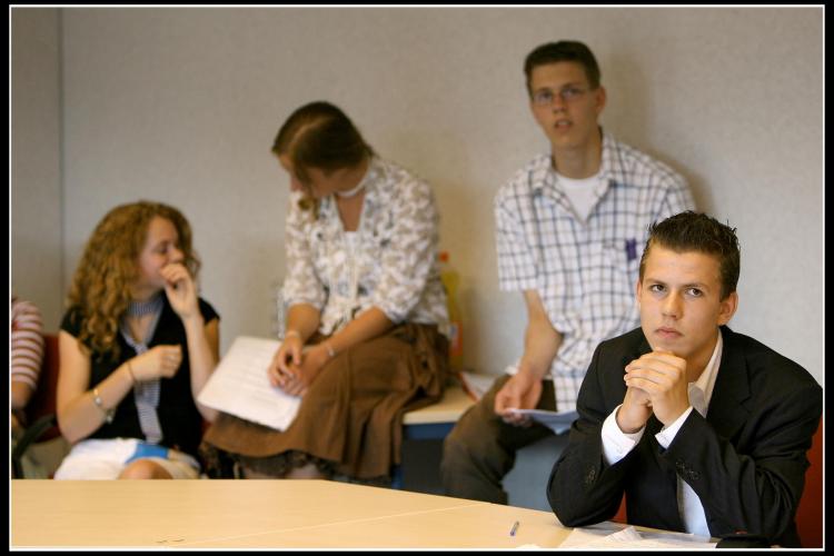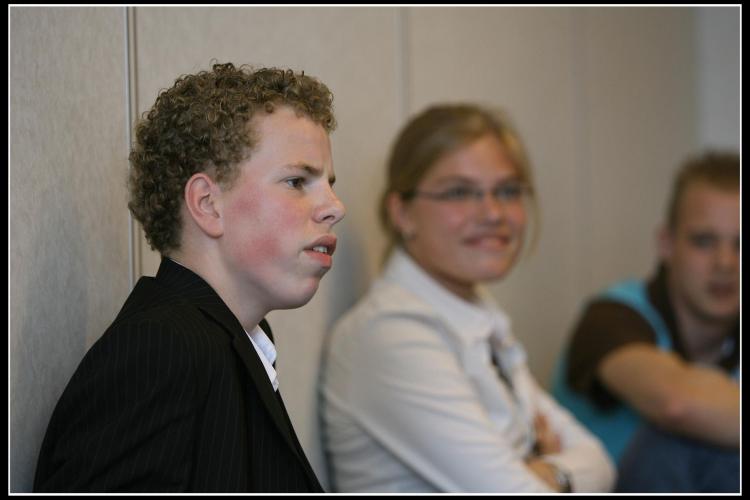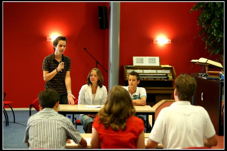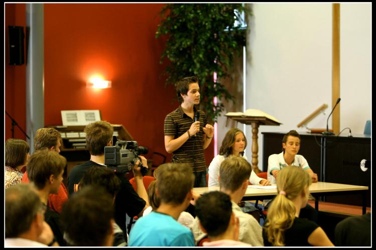 Lastig hoor, je medescholieren ervan overtuigen dat een maatschappelijke stage écht niet kan. Leerlingen van de Fruytier Scholengemeenschap, het Calvijn College, het Wartburgcollege en de Pieter Zandt Scholengemeenschap discussieerden woensdag in Apeldoorn onder andere over dat onderwerp. Het Calvijn College uit Goes won de debatwedstrijd. - Foto´s RD, Henk Visscher