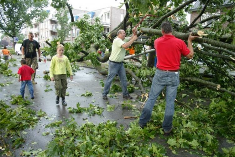 VRIJDAG - Noodweer veroorzaakte donderdagavond een ravage in het centrum van Hoogeveen. Slagregens, hagelstenen zo groot als knikkers en hevige rukwinden richtten een spoor van vernielingen aan in de binnenstad. Tientallen bomen kwamen op woningen en auto’s terecht. Er raakten twee mensen gewond.
