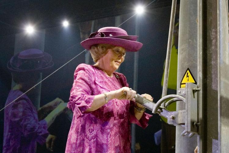 ZATERDAG - Koningin Beatrix opent de Betuweroute bij NS station Barendrecht. Met het omhalen van een hendel in de feesttent geeft zij het startsein voor de eerste goederentrein.