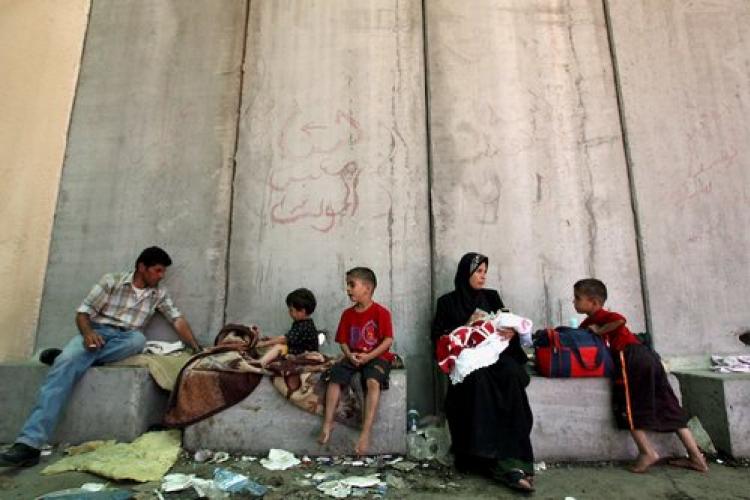 DONDERDAG - Een Palestijnse familie wacht bij een checkpoint in het noorden van de Gazastrook in de hoop naar Israël te kunnen vluchten. Tal van Palestijnen voelen zich gedwongen de Gazastrook te verlaten sinds de radicale Islamtische verzetsbeweging Hamas daar de macht naar zich toetrekt.