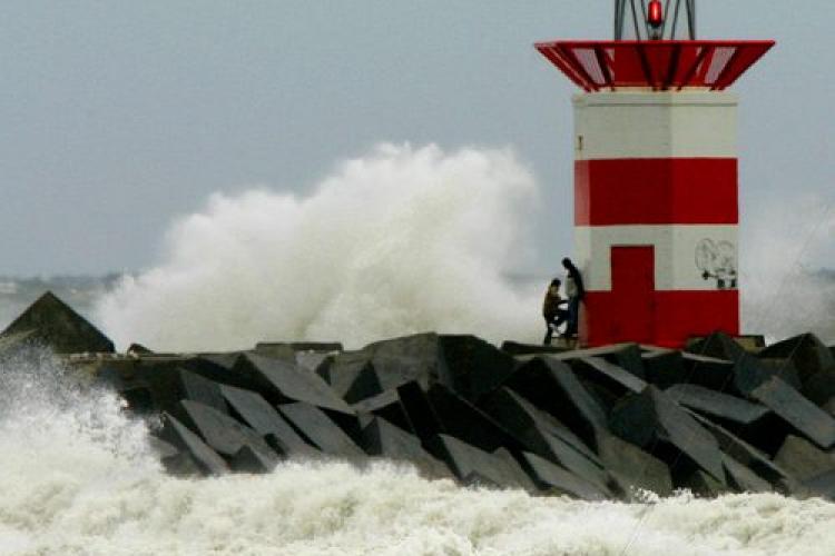 DINSDAG - Storm op het strand van Scheveningen. De zee beukt tegen de golfbreker. In Zeeland en Zuid Holland kwamen zware windstoten voor met snelheden tot 90 kilometer per uur.