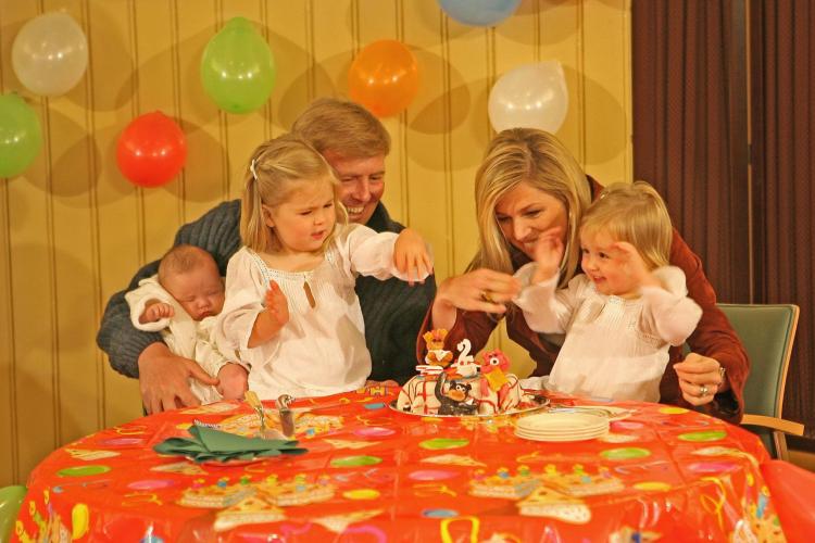 DINSDAG – Feest in de Koninklijke Stallen in Den Haag. Prinses Alexia viert haar tweede verjaardag. V.l.n.r. het pasgeboren onlangs geboren prinsesje Ariane, prinses Amalia en de jarige prinses Alexia.