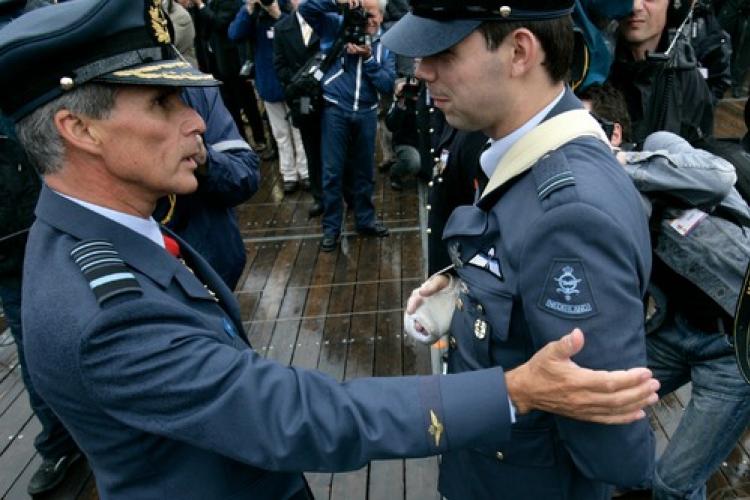VRIJDAG – Commandant der strijdkrachten D. Berlijn spelt een onderscheiding op bij een gewonde militair die net terug is van zijn uitzending naar Afghanistan. Zo’n 25.000 tot 30.000 mensen bezochten de derde Veteranendag op het Malieveld in Den Haag. Ook prins Willem Alexander spelde medailles op.