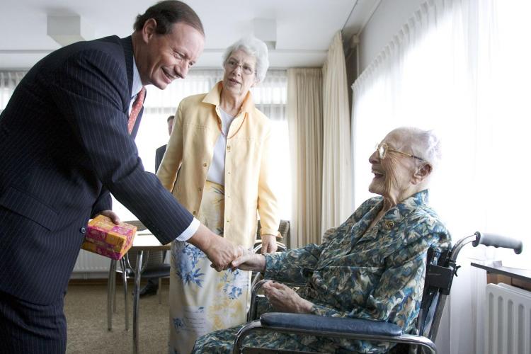 VRIJDAG - Directievoorzitter Sluimers van pensioenfonds ABP bezoekt ter gelegenheid van het 85 jarig bestaan van het ABP de 109 jarige mevrouw Plaat in Den Haag. Zij is de oudste deelneemster van het pensioenfonds.