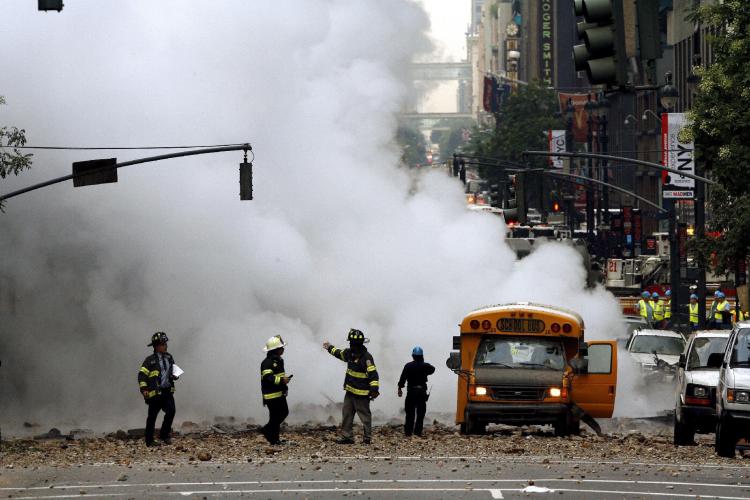 WOENSDAG – In New York komt een persoon om het leven door de ontploffing van een ondergrondse stoompijp. De explosie zorgde voor paniek: veel mensen dachten aan een aanslag. - Foto's ANP / EPA / RD