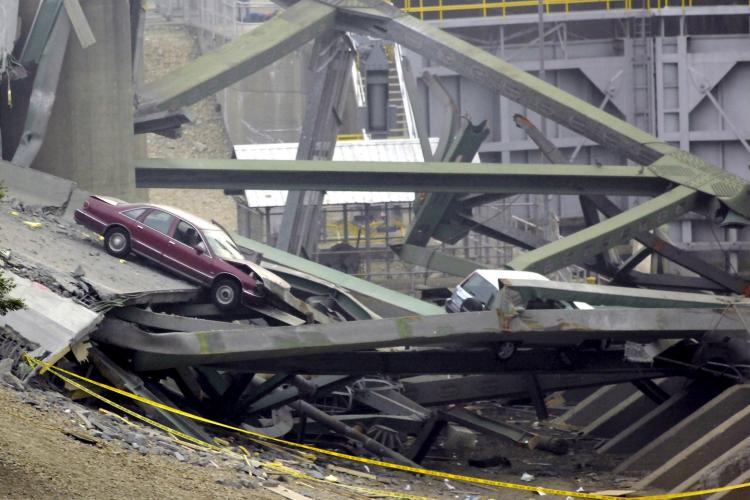 WOENSDAG – Een brug over de rivier Mississippi, bij Minneapolis, is tijdens de avondspits door onbekende oorzaak plotseling ingestort. Vier mensen vonden de dood, naar dertig vermisten wordt nog gezocht. Een terroristische aanslag wordt uitgesloten.