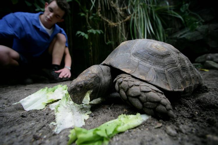 VRIJDAG – Burgers’ Zoo in Arnhem heeft een zeer zeldzame manouria op de kop weten te tikken, de enige in Nederland. De bijna uitgestorven zwarte landschildpad is de enige schildpad ter wereld die net als een vogel takjes en twijgjes verzamelt en daarvan een nest bouwt. Bovendien eet het dier sneller dan het loopt. Binnen enkele minuten heeft de schildpad een krop andijvie achter z’n kiezen.