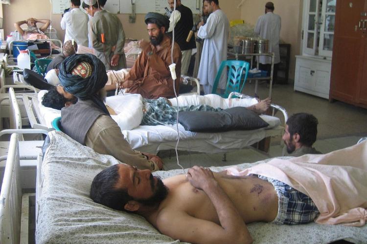 VRIJDAG – Ziekenhuispersoneel in het Zuid Afghaanse Kandahar verpleegt burgers die door luchtaanvallen gewond zijn geraakt. Regelmatig vallen er onbedoeld burgerslachtoffers bij het optreden van de internationale vredesmacht in Afghanistan.