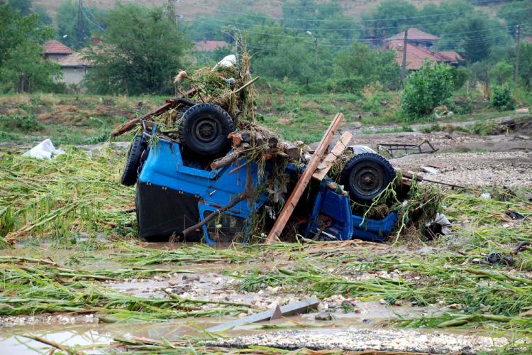 DINSDAG - Bulgarije heeft last van overstromingen. Zeker acht mensen stierven door het noodweer. Op de foto een omgeslagen auto.
