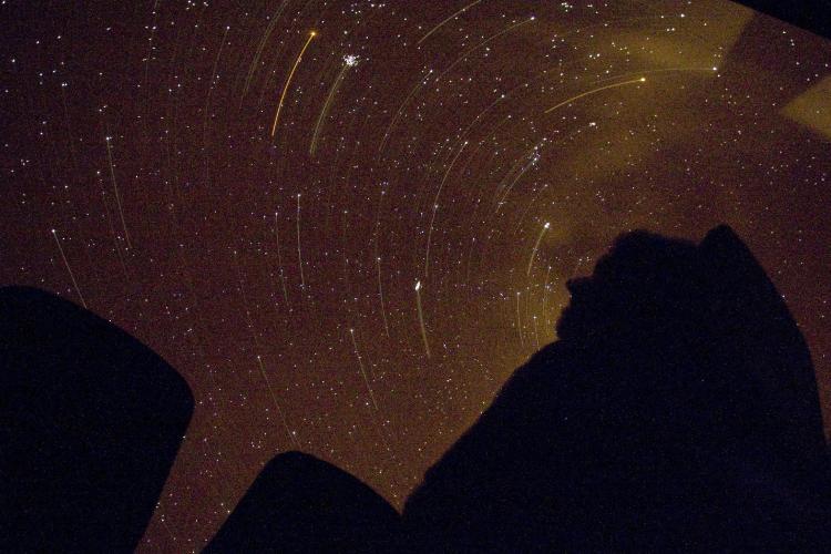 DONDERDAG - In het Planetron van Dwingeloo kijken bezoekers naar vallende sterren. De sterrenregen werd veroorzaakt doordat de aarde dwars door een zwerm gruis in de ruimte trekt. Als een gruisdeeltje in de dampkring van de aarde komt, verbrandt het en dat ziet er uit als een vallende ster. Het gruis is afkomstig van de komeet Swift-Tuttle.