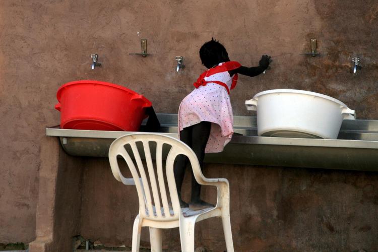DINSDAG - Een Sudanees vluchtelingetje uit Darfur wast haar handen in een opvangkamp voor mensen die de door burgeroorlog geteisterde regio in Sudan zijn ontvlucht. Het kamp is opgezet in het Zuid-Israëlische dorp Kadesh Barnea. Maandag werd bekend dat Israël vluchtelingen uit Darfur gaat terugsturen om de toestroom vanuit Egypte in te dammen.