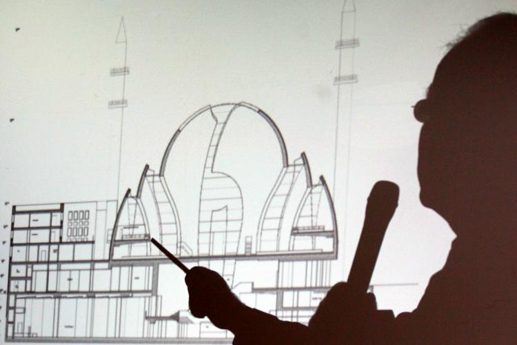 DONDERDAG - De Duitse architect Paul Böhm licht zijn plannen toe voor een megamoskee in Keulen. Het gebouw, met een koepel van 35 meter, moet de grootste moskee van Europa worden. Bewoners van de wijk Ehrenfeld, waar de moskee staat gepland, hebben vooral bezwaar tegen de 55 meter hoge minaretten.