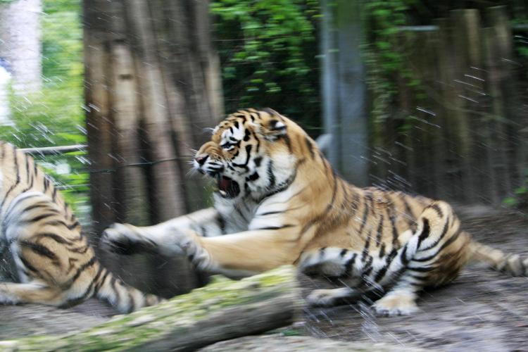 VRIJDAG - De nieuwe Siberische tweejarige tijgerkater Ilya van Dierenpark Amersfoort ontmoette donderdag voor het eerst zijn nieuwe partner Kira. Dat zorgde voor een paar letterlijke botsingen tussen de twee. Het is de bedoeling dat de vijfjarige, temperamentvolle Kira en tijger Ilya voor nageslacht gaan zorgen.