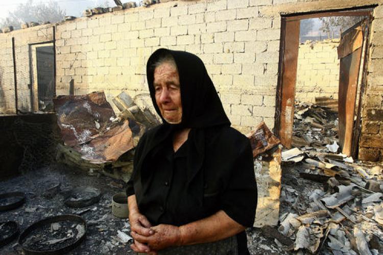 MAANDAG - Een Griekse vrouw staat voor de puinhopen van haar afgebrande huis in het dorpje Platiana. Bosbranden hebben in Griekenland al zeker 64 levens geëist. Bij de bestrijding van de bosbranden krijgt Griekenland massaal hulp van verschillende landen. - Foto's RD, ANP, EPA