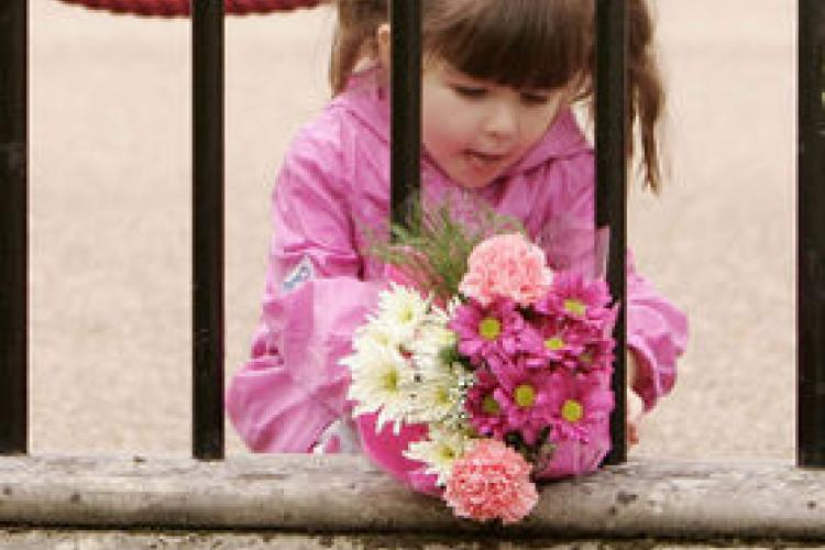 VRIJDAG - Een meisje legt een boeketje bloemen neer bij de poort van Kensington Palace, in het centrum van Londen. De Britten herdenken de dood van prinses Diana, die tien jaar geleden bij een auto ongeluk in Parijs om het leven kwam.