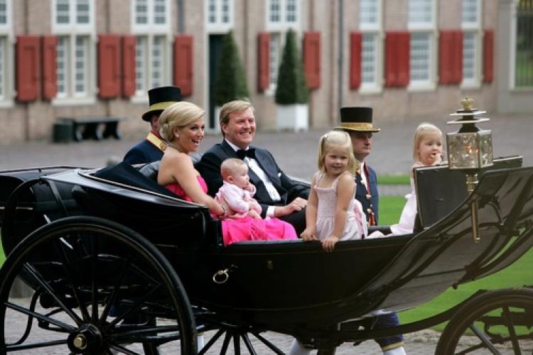 ZATERDAG - Prins Willem‑Alexander vierde zaterdagavond op Paleis Het Loo zijn veertigste verjaardag met tal van buitenlandse gasten. De prins arriveerde met zijn gezin in een blauwe calèche bij het paleis.