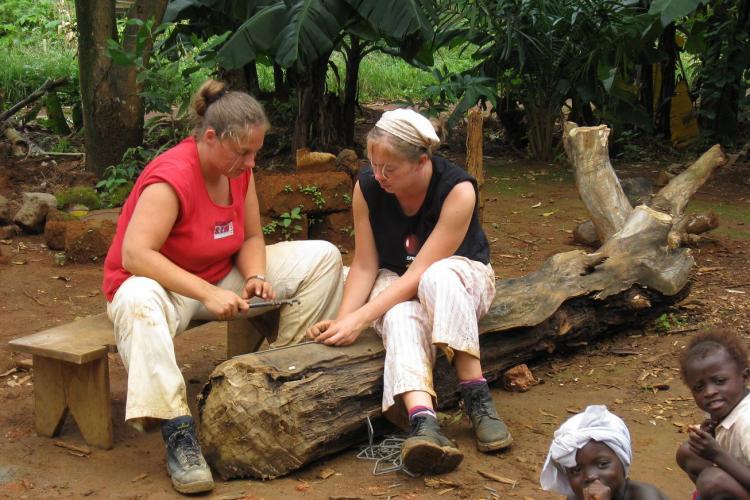 Even een rustig plekje om ijzer te vlechten. Als je blank bent, zit je niet lang alleen. Kinderen en volwassenen komen een kijkje nemen of gaan een gesprek aan.