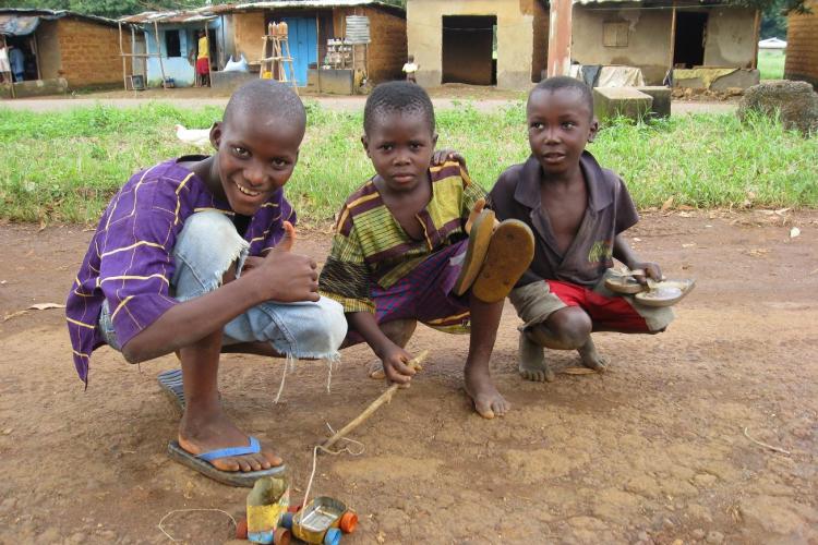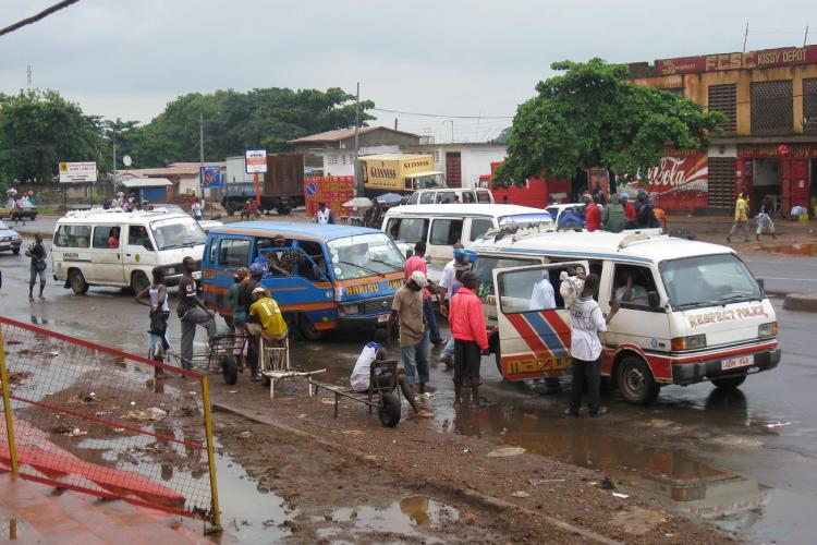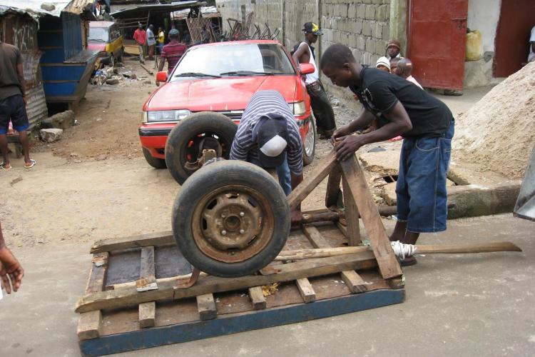 Een straatje in Freetown. Kar kapot? Dan maak je die toch even?
