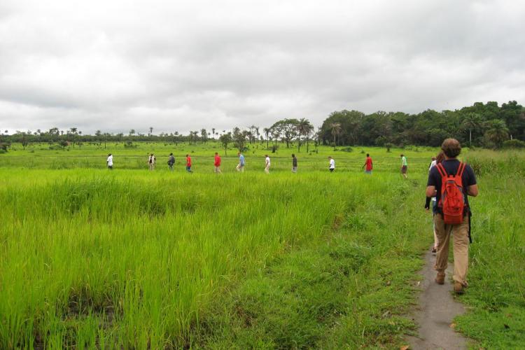 Rijstvelden. Woord en Daad steunt een landbouwproject in de binnenlanden. Hier worden boeren opgeleid hoe ze het beste gewassen kunnen verbouwen. De oogst kan dan weer geexporteerd worden naar onder andere Nederland.