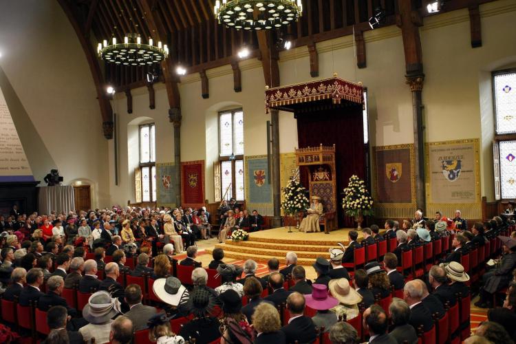 De aanwezigen in de Ridderzaal luisteren naar koningin Beatrix.