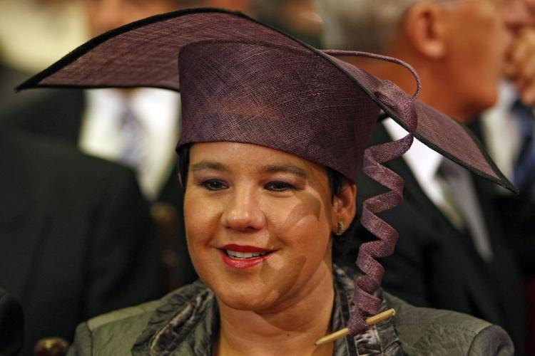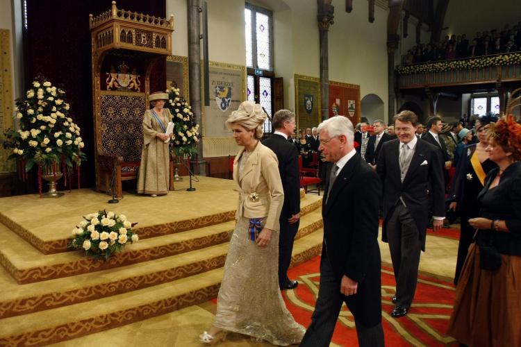 Prinses Máxima en prins Constantijn (achter) worden in de Ridderzaal naar hun plek gebracht.