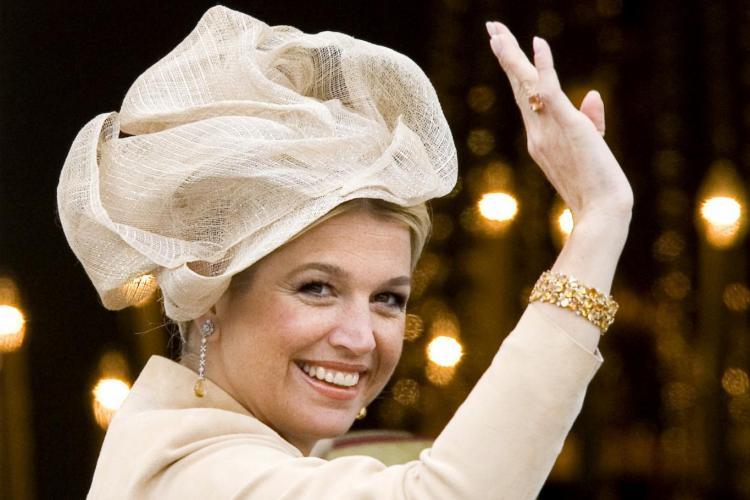Vanuit de Gouden Koets zwaait prinses Máxima naar de toeschouwers.
