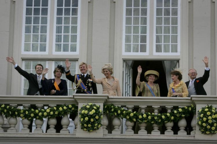 DINSDAG - Het sluitstuk van Prinsjesdag. De leden van het Koninklijk Huis zwaaien naar het publiek vanaf het bordes van Paleis Noordeinde. V.l.n.r. prins Constantijn, prinses Laurentien, prins Willem-Alexander, prinses Máxima, koningin Beatrix, prinses Margriet en Pieter van Vollenhoven.