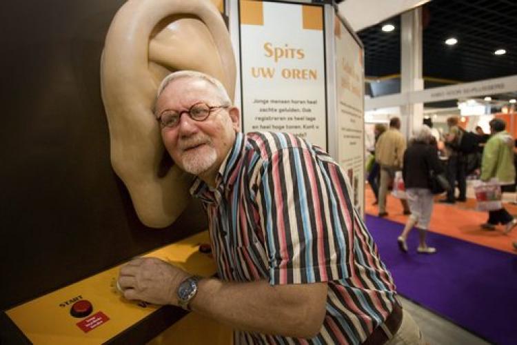 WOENSDAG - Een bezoeker test zijn gehoor tijdens de 50PlusBeurs, die voor de vijftiende keer plaatsvindt in Utrecht.