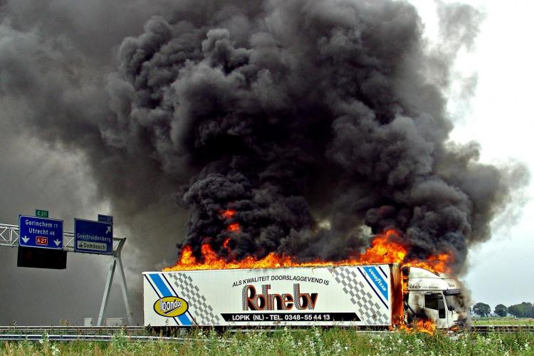 DONDERDAG - Een brandende vrachtauto zorgt voor overlast op de A27 bij Gorcum. Daardoor ontstond een file van 18 kilometer. De vrachtwagen vervoerde banden.