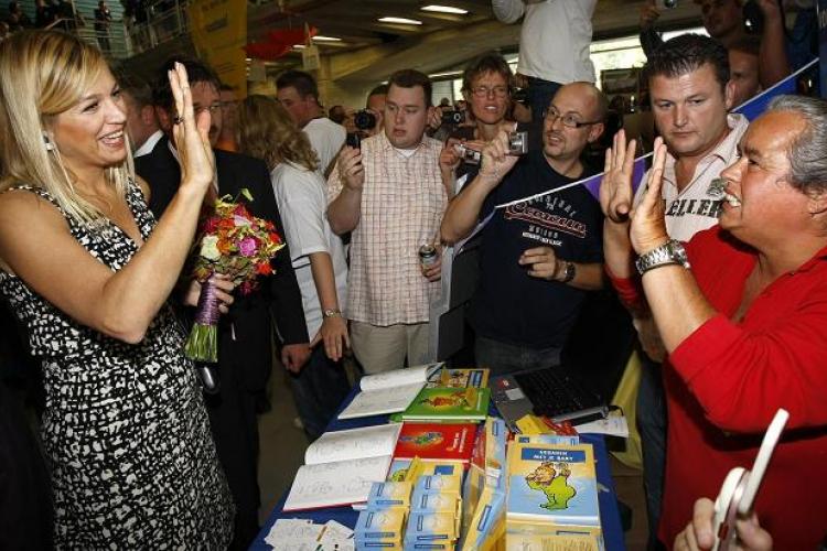 ZATERDAG - Prinses Máxima in gesprek met de dove vrouw Sarah Muller (r.) van het Nederlands Gebarencentrum, tijdens Werelddovendag 2007 in Eindhoven. Een informatiemarkt, sport en spel en workshops laten zien hoe kleurrijk de dovenwereld is.