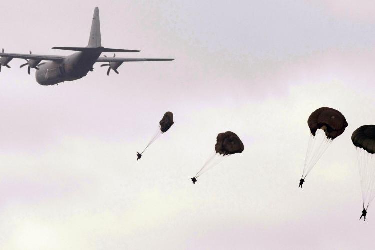 ZATERDAG - In Arnhem wordt de 63e herdenking van de Slag om Arnhem gehouden. Onder grote publieke belangstelling springen parachutisten boven de Ginkelse Heide bij Ede uit een vliegtuig.