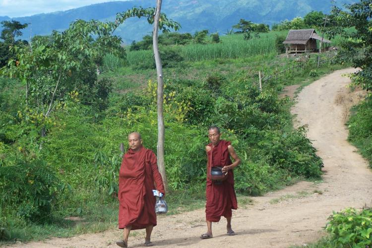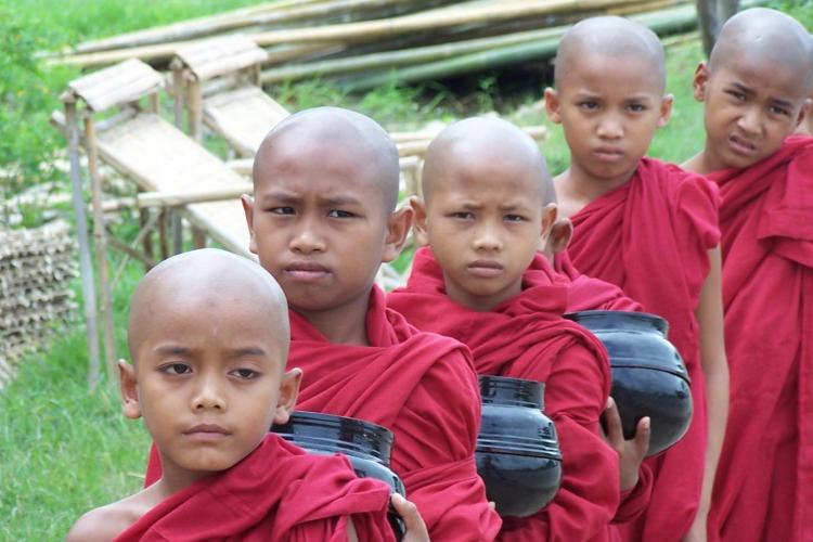 Overal op straat zijn boeddhistische monniken in rode pijen en met kaalgeschoren hoofd te zien. Negen op de tien Birmezen is boeddhist. Bijna alle jongens vanaf tien jaar nemen voor kortere of langere tijd deel aan het kloosterleven.