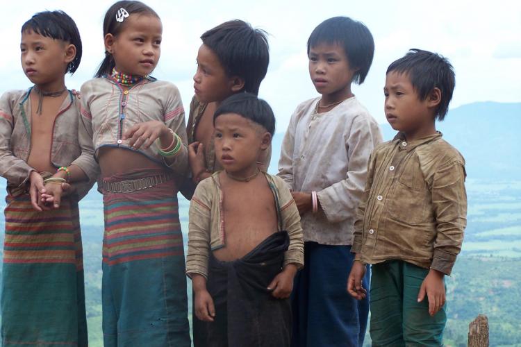 Kinderen worden hier ingezet om wegen te repareren of om teakhout vanuit de bergen naar het dal te dragen.