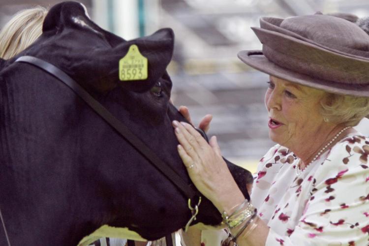 30-06-2006 - Koningin Beatrix woont een rundveeshow bij tijdens de 10e Nationale Rundvee Manifestatie in de Veemarkthallen in Utrecht.