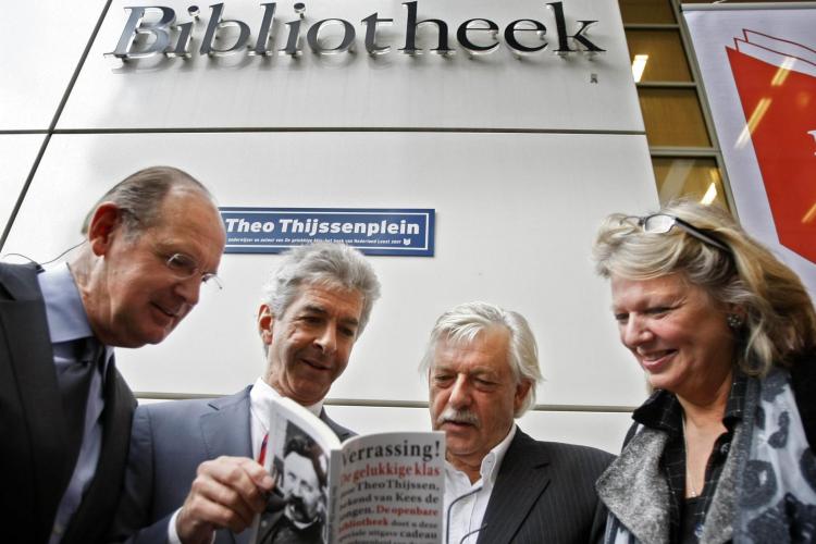 ZATERDAG - Minister Plasterk (tweede van links) bladert met schrijver Jan Siebelink in ”De gelukkige klas” van Theo Thijssen. Het boek staat centraal in de campagne ”Nederland Leest”. Leden van openbare bibliotheken kunnen het boekje gratis krijgen.