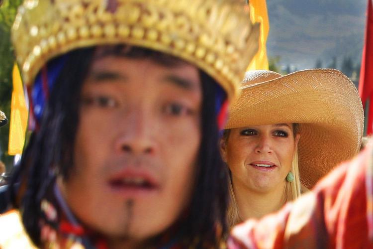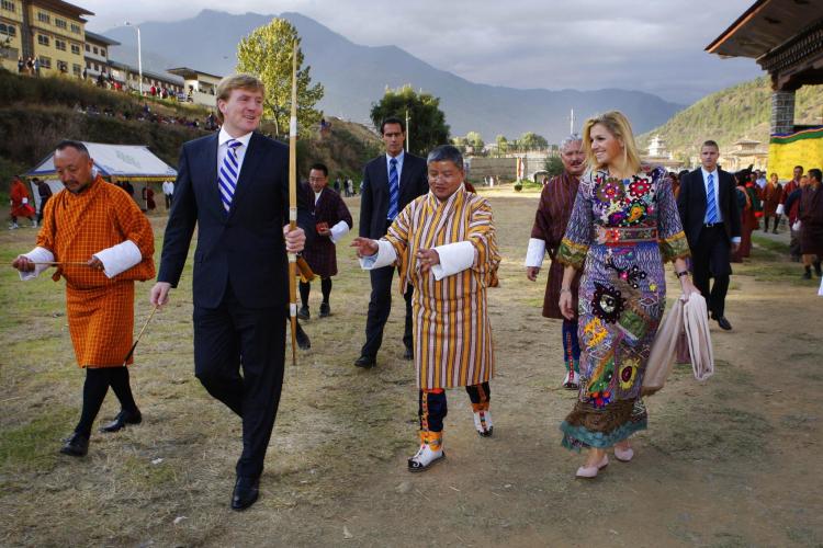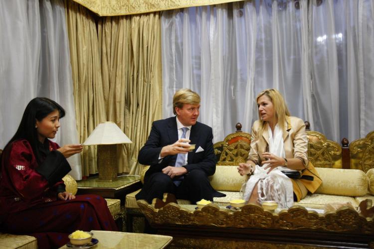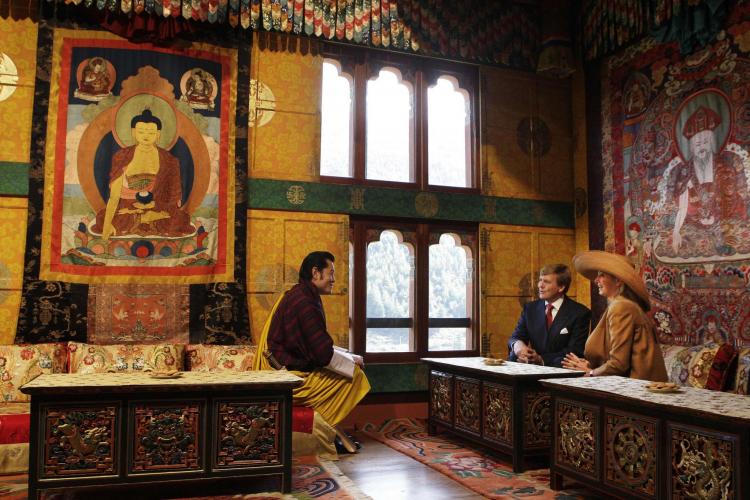 Prins Willem-Alexander en prinses Máxima op audiëntie bij koning Jigme Khesar Namgyel Wangchuck. De koning is nog maar 27 jaar en nog niet officieel ingehuldigd.