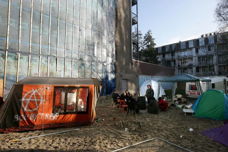DINSDAG – Krakers hebben een tentenkamp opgeslagen in de Van Ostadestraat in Amsterdam. Ze voeren daarmee actie tegen een mogelijk verbod op kraken.