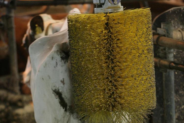 WOENSDAG – Steeds meer agrariërs hangen een borstel in de stal om hun koeien extra comfort te geven. De borstels zijn bedoeld als krabber tegen jeuk en verwijderen bovendien losse haren en vuil van het koeienlijf.