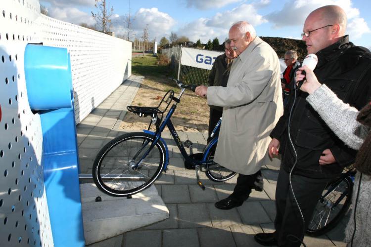 VRIJDAG - Nijmegen Lent en Arnhem Zuid zijn de eerste NS stations in Nederland met een zogenaamde bikedispenser. Reizigers kunnen daar een huurfiets uit de muur trekken. Via een geautomatiseerd systeem is het mogelijk om tijdelijk een fiets mee te nemen. Na afloop van de huurtermijn moet de fiets weer via een speciale gleuf terug de bikedispenser in.