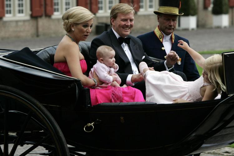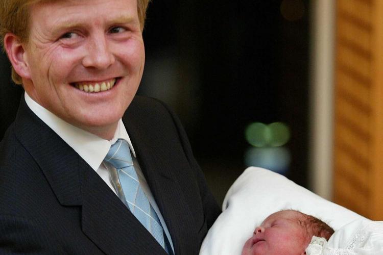 Trots toont de kroonprins zijn dochter aan de pers. Ze komt op 7 december 2003 ter wereld in het Bronovoziekenhuis in Den Haag. Amalia's namen luiden: Catharina-Amalia Beatrix Carmen Victoria.
