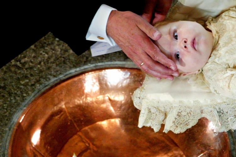 Bij het doopvont van de Grote of Sint-Jacobskerk in Den Haag.