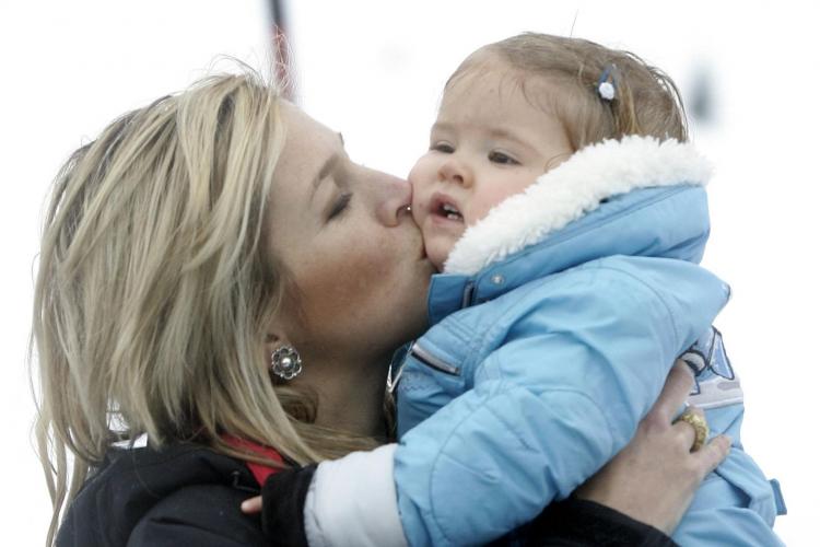Kusje! De jonge prinses op vakantie in de Oostenrijkse wintersportplaats Lech, 12 februari 2005.