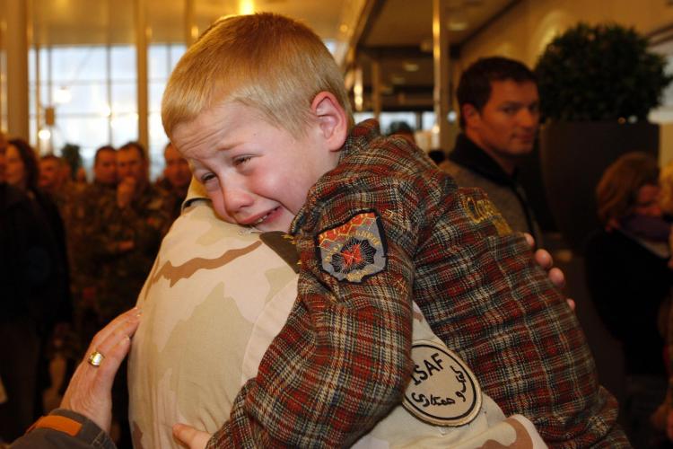 DONDERDAG - Vader gaat naar Afghanistan. De nieuwe commandant van de Task Force Uruzgan, Richard van Harskamp, neemt op de Vliegbasis Eindhoven afscheid van zijn zoon. De jongen viert vandaag juist z’n zesde verjaardag.