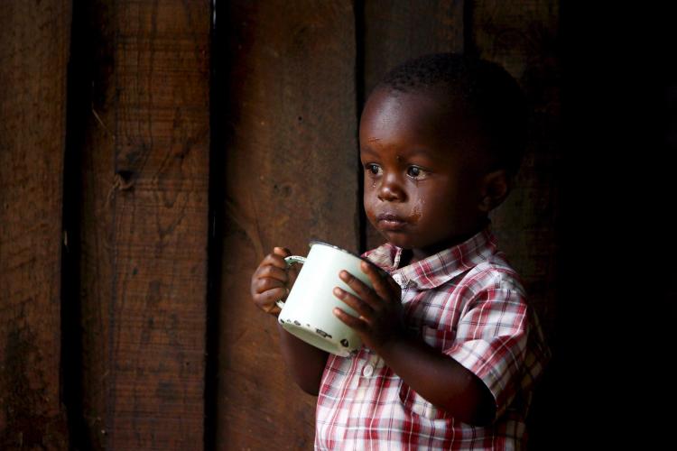 Een bekertje soep. Een jongetje in een kamp voor ontheemde mensen bij Nairobi. De spaningen in Kenia houden al aan sinds de verkiezingen eind december. Het conflict heeft zeker 1000 levens geëist en 600.000 mensen zijn van huis en haard verdreven.