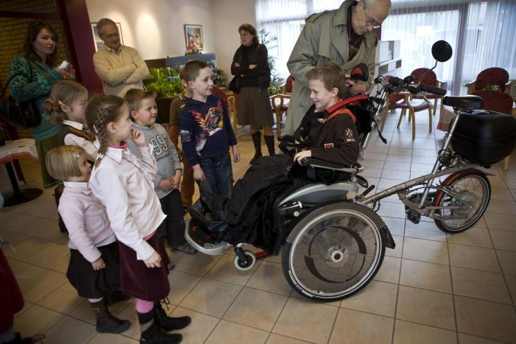 Kennismaken met het bejaardentehuis. Schookinderen uit Barendrecht werden dinsdag rondgeleid in zorgcentrum Uitzicht in Vlaardingen.