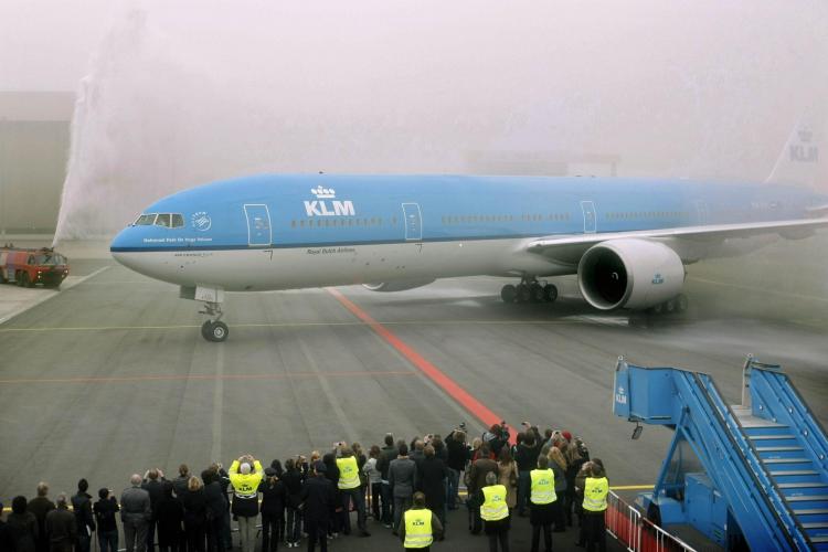 Een vliegtuig met de naam ‘Nationaal Park De Hoge Veluwe’. De eerste Boeing 777 300ER van KLM kwam gisteren aan op Schiphol. Het is in zijn serie het efficiëntste en meest klimaat en milieuvriendelijke vliegtuig.