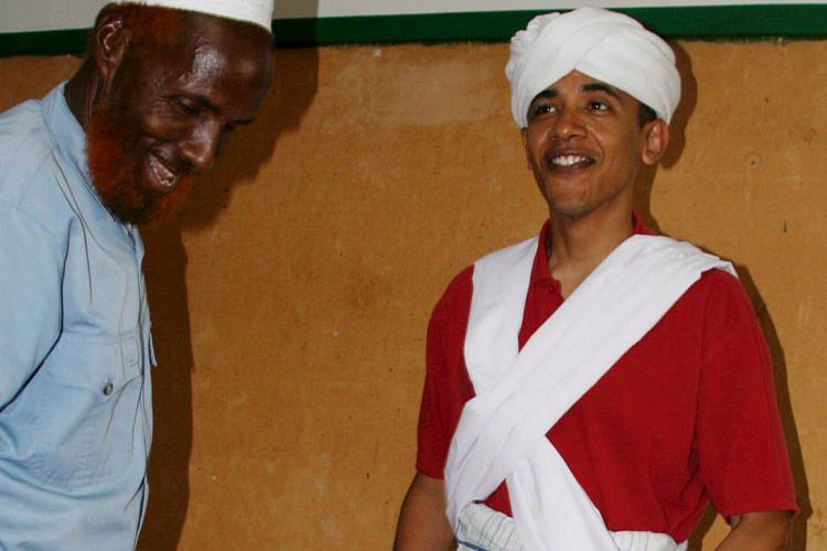 Dinsdag – Dit is Barack Obama, de mogelijk toekomstige president van de Verenigde Staten. Hij is gekleed in een traditioneel Afrikaans kostuum inclusief tulband. De foto wordt door rivaal Hillary Clinton gebruikt om Obama aan te pakken en zijn vermeende sympathie met de Islam te belichten.