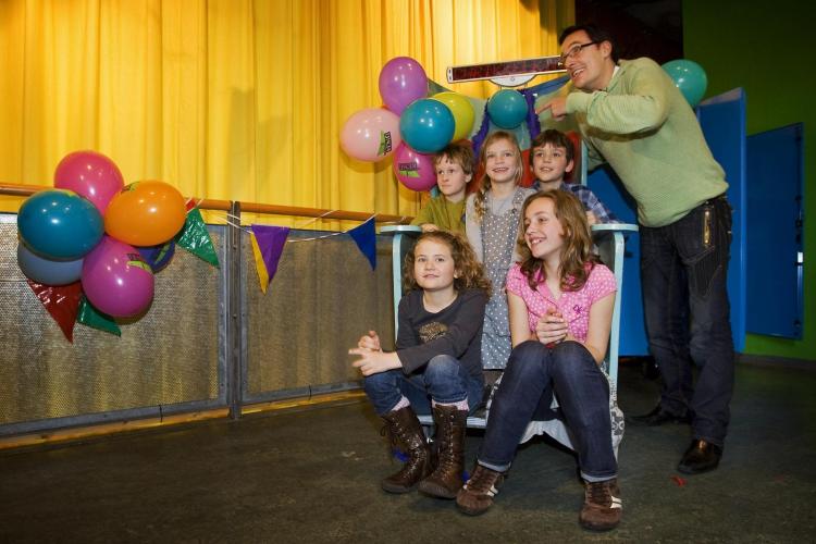 Zaterdag – Op de ”verjaardagstroon” zaten gisteren enkele schrikkelaars. Julian, Ghislaine, Jeroen (achterste rij, v.l.n.r.) en Merel (links vooraan) zijn gisteren in schrikkeljaren allemaal twee geworden. Brenda (rechts vooraan) werd, eveneens in schrikkeljaren, drie.