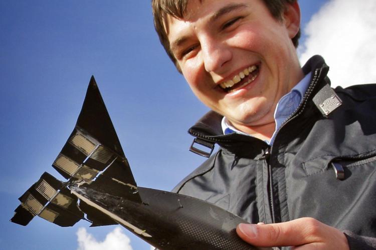 DINSDAG – Een student demonstreert de RoboSwift, een microvliegtuigje geďnspireerd op de gierzwaluw. Het vliegtuig is uitgerust met camera’s waarmee in de toekomst vogels kunnen worden bestudeerd of surveillance van groepen mensen of voertuigen mogelijk is.